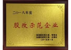 2019年01月 獲得股改示范企業榮譽稱號;